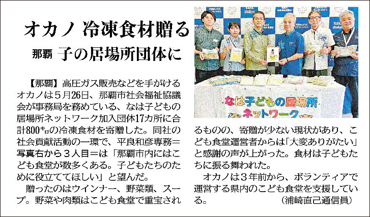 オカノ 冷凍食材贈る 那覇 子の居場所団体に